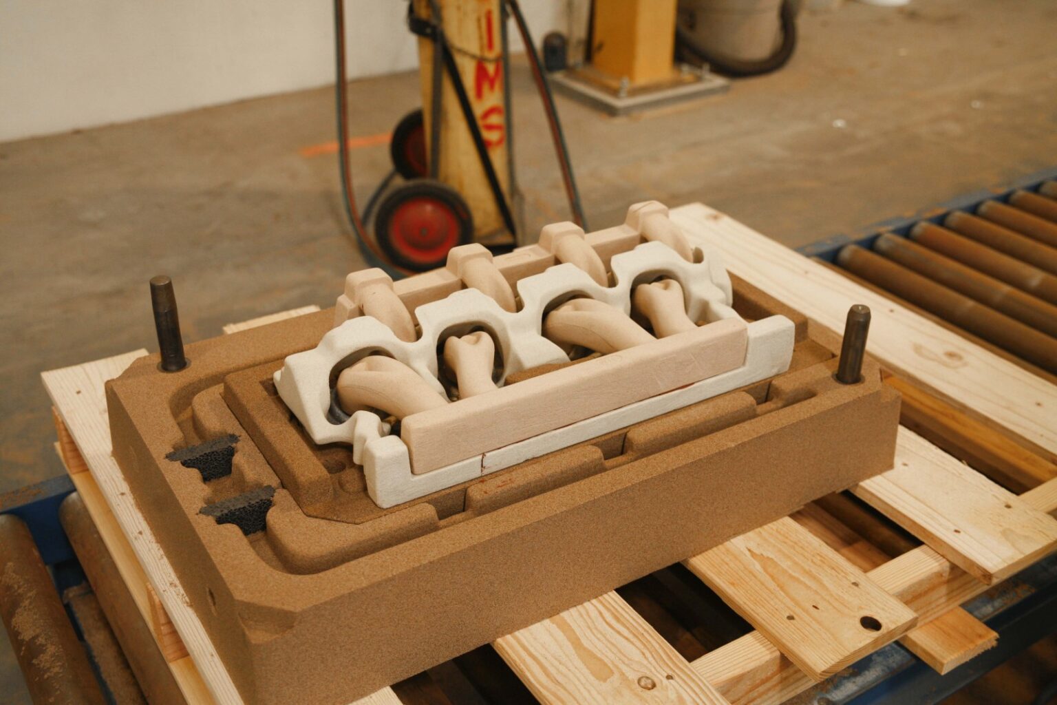 В процессе Колд-Бокс, точнее, в процессе полиуретанового Колд-Бокс-Амина, в формовочный материал, как правило, в кварцевый песок, добавляются два связующих компонента.Первый компонент связующего (Компонент 1) представляет собой конденсированную фенольную смолу, обычно растворенную в органических растворителях.Вторым компонентом (Компонент 2) является полиизоцианат, растворенный в органических растворителях.Затем полученной смесью заполняют литейную оснастку. Для ускорения реакции между двумя компонентами связующего через песчано-смоляную смесь пропускают газообразный катализатор — третичный амин.Таким образом, гидроксильная (ОН-) группа фенольной смолы реагирует с NCO-группой изоцианата с образованием твердого уретанового полимера, который связывает отдельные песчинки.Оба компонента могут быть модифицированы различными добавками, чтобы улучшить требуемые параметры и адаптировать их к специфике конкретного литейного завода.